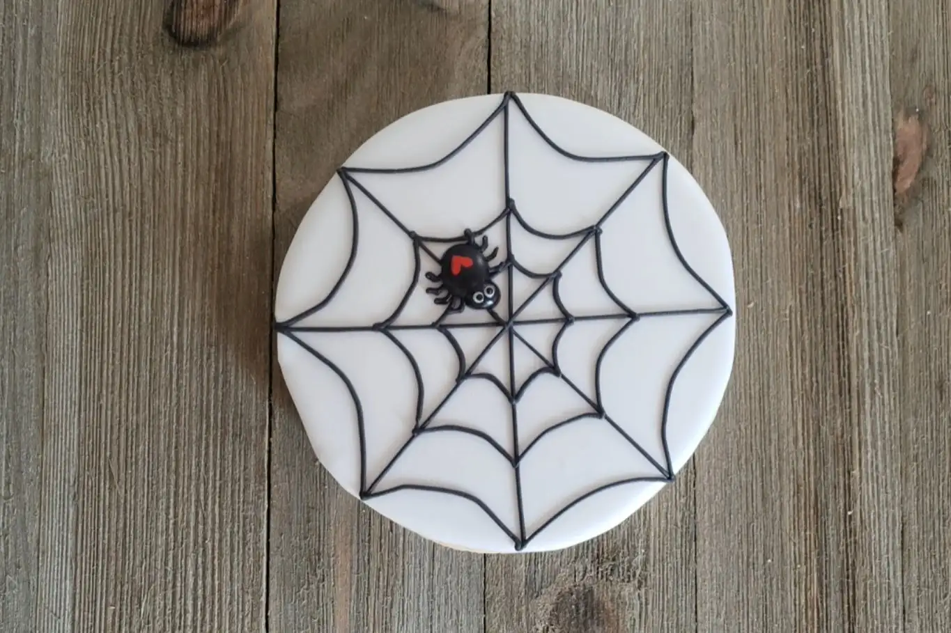 1. The Border: Use Black Royal Icing with a #2 piping tip to outline the cookie edge and trace the main “spokes” of the stamped web.